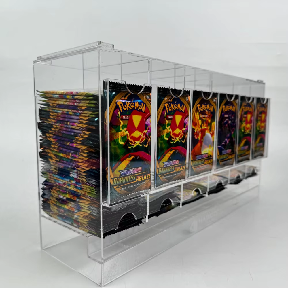 Six Slot Capacity — Each of the six slots in this dispenser holds over one full PKMN booster box (36+ packs), giving you ample storage space for your favorite TCG or sports card boosters. Organize and display your collections with ease and efficiency in a single, compact unit.
