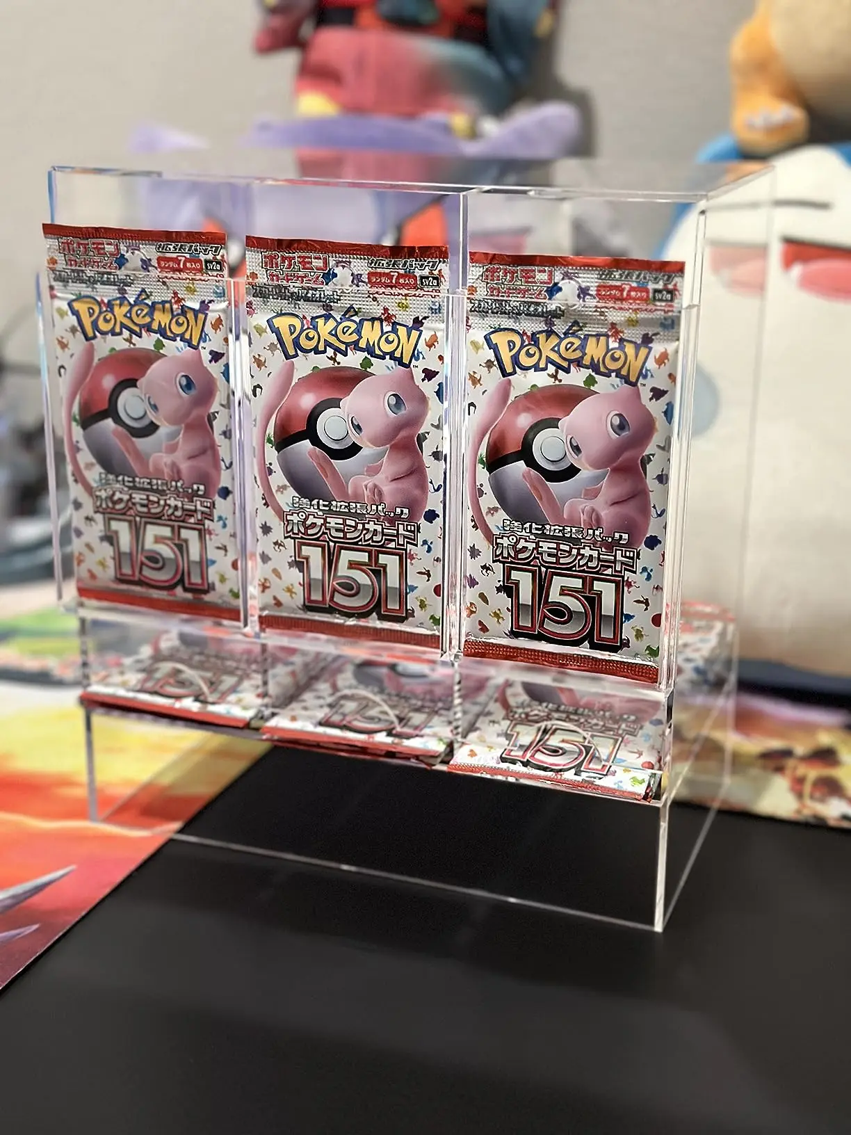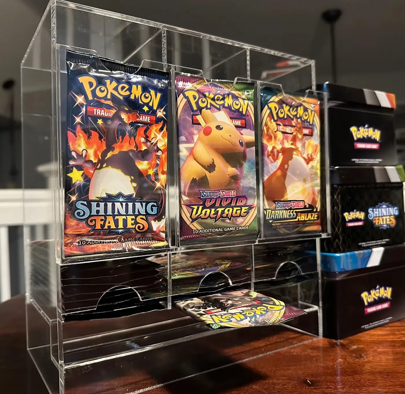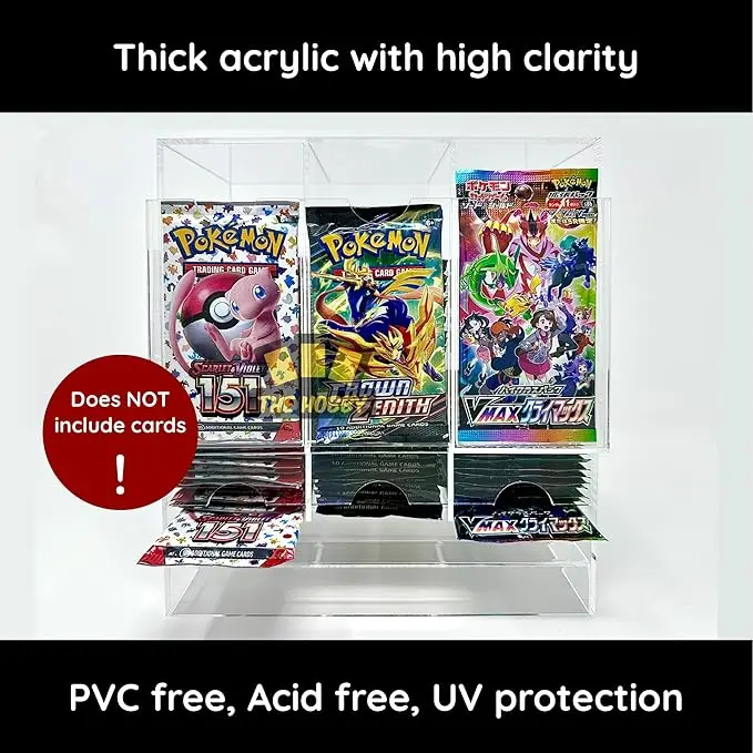 ที่จัดเก็บการ์ดแบบบูสเตอร์แพ็ก 3 ช่องสำหรับโปเกมอนและเกมการ์ดสะสมอื่นๆ (TCG) รุ่นทันสมัย ติดตั้งง่าย ใช้จัดแสดงกล่องบูสเตอร์ทั้งกล่องได้อย่างลงตัว เหมาะสำหรับการเล่นเวทมนตร์แบบ Draft