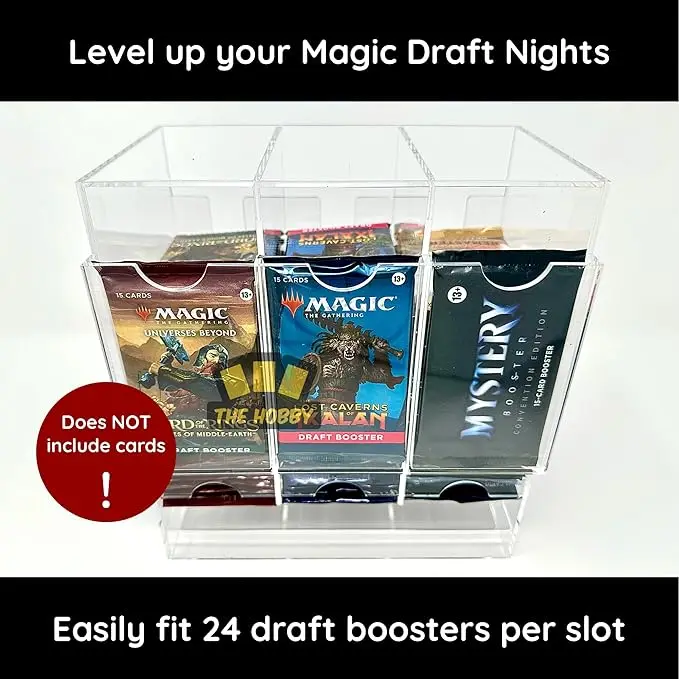 - ชั้นวางซองบูสเตอร์แบบติดตั้งง่าย 3 ช่อง | ช่วยให้การจัดการการ์ดแบบ Draft สำหรับเกมการ์ดสะสม (TCG) ของคุณราบรื่นยิ่งขึ้น และจัดแสดงซองการ์ดที่ยังไม่เปิดในสไตล์ทันสมัย