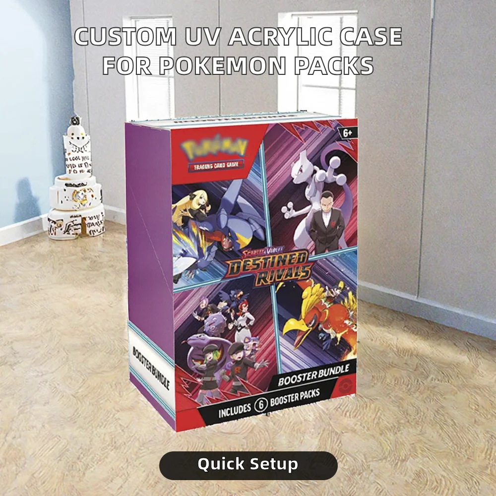 - กล่องจัดเก็บการ์ดบูสเตอร์ PTCG แบบปรับแต่งทันสมัย | อะคริลิกต้านรังสี UV พร้อมฝาปิดแบบแม่เหล็ก