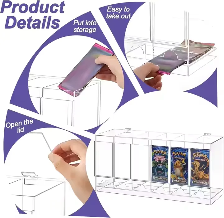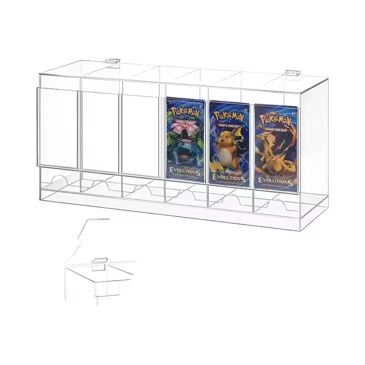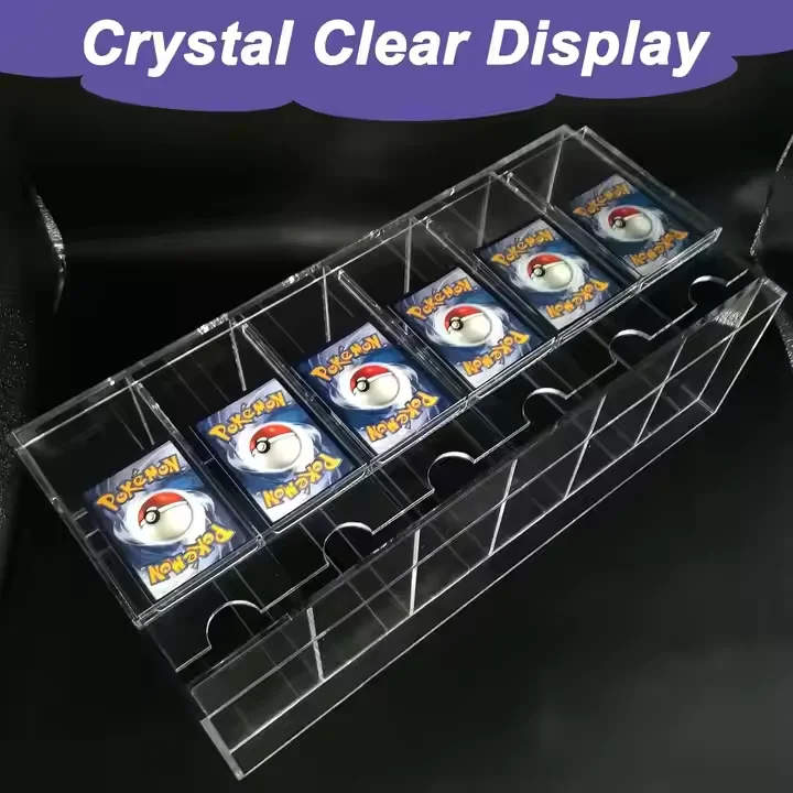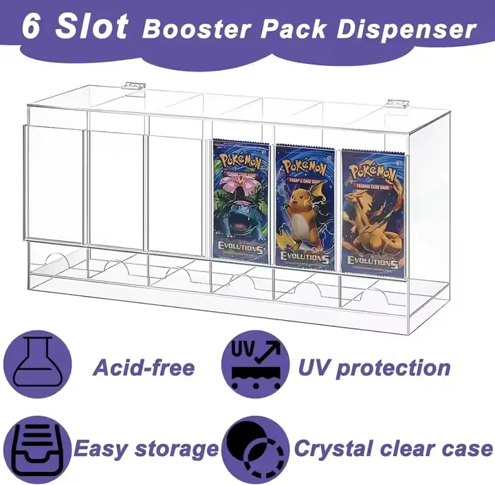 ที่จัดเรียงการ์ดบูสเตอร์แบบอะคริลิก PMMA ที่ทันสมัย 6 ช่อง พร้อมฝาปิด สามารถซ้อนทับกันได้ สำหรับการ์ดสะสม TCG และการ์ดกีฬา
